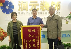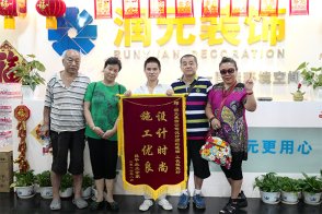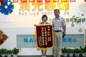 2016.7.16日上午,潤(rùn)元裝飾客戶柏樹(shù)啟攜家人來(lái)到潤(rùn)元裝飾總公司,將一面繡有“設(shè)計(jì)滿意 服務(wù)到位 手藝精湛盡心盡責(zé)”的牌匾送到潤(rùn)元裝飾的領(lǐng)導(dǎo)手中,衷心感謝潤(rùn)元裝