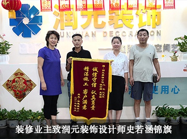 2016.8.21號(hào)下午,潤(rùn)元裝飾首席設(shè)計(jì)師史若涵迎來(lái)了業(yè)主的鼓勵(lì)錦旗!業(yè)主對(duì)我公司的施工、管理、設(shè)計(jì)做出了肯定和表?yè)P(yáng),并且感謝我公司在施工過(guò)程中對(duì)業(yè)主利益的考慮