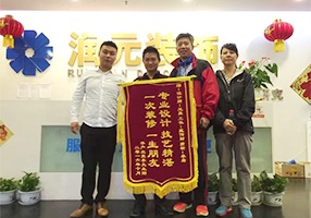 2016.7.16日上午,潤(rùn)元裝飾客戶攜家人來(lái)到潤(rùn)元裝飾總公司,將一面繡有“為客戶著想一絲不茍、讓客戶滿意精益求精”的大紅色錦旗送到潤(rùn)元裝飾的領(lǐng)導(dǎo)手中,衷心感謝潤(rùn)