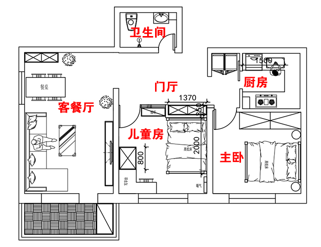 晁先生一家平時(shí)吃飯是在一間9平米的放了一張單人床的臥室,吃飯的時(shí)候就放一個(gè)折疊桌子,如今裝修業(yè)主希望能夠?qū)崿F(xiàn)客餐廳一體化。