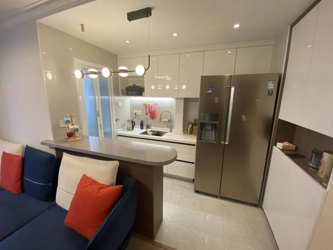 設(shè)計師拆除了廚房和客廳的這堵輕體隔斷墻,將原本封閉的廚房改成了開放式的,再重新規(guī)劃。