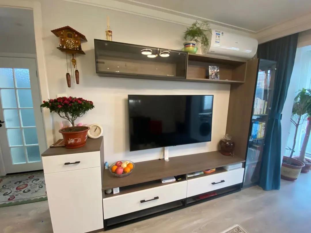 而客廳區(qū)域,用定制電視柜拉伸了整體的空間感,茶幾沙發(fā)依次擺放,形成一種環(huán)抱的感覺,既溫馨又實(shí)用。