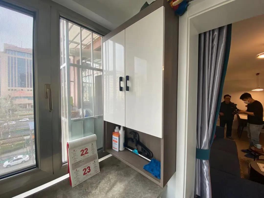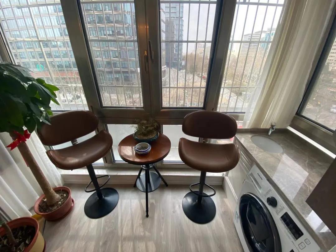 陽臺區(qū)域設(shè)計師為業(yè)主打造了多功能的休閑區(qū)和晾曬區(qū),洗衣、晾曬都很方便。利用定制家具,還打造了一組陽臺柜,存放日常的洗衣用品。曾經(jīng)閑置的區(qū)域,搖身一變成了兼具休閑、洗衣、晾曬、儲物的多功能空間。