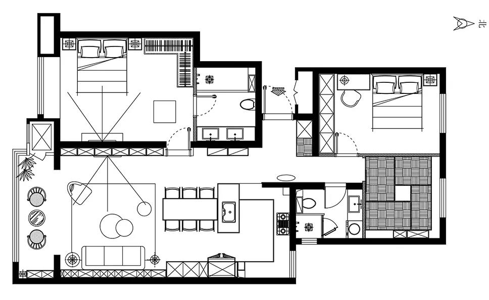 100㎡新房裝修,客廳、餐廚一體化竟然能如此開闊!