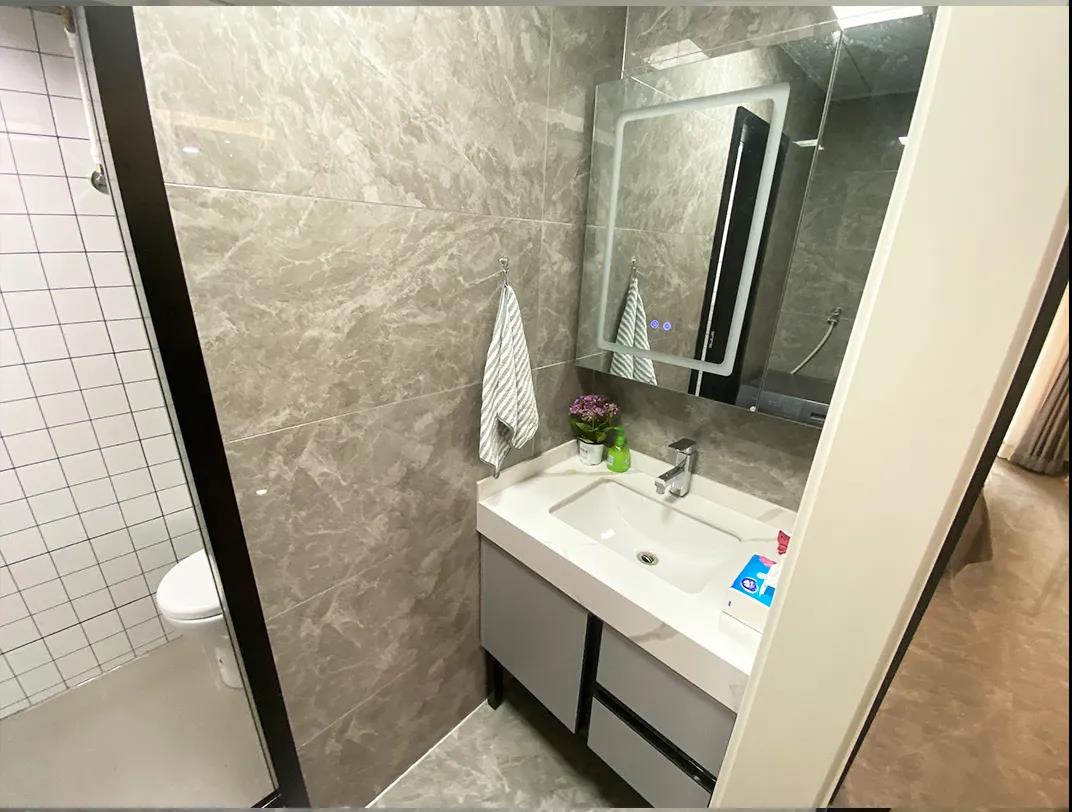 設(shè)計師重新規(guī)劃了衛(wèi)生間,里面為濕區(qū),規(guī)劃了淋浴和馬桶,外面是干區(qū),擺放了洗衣機(jī)和洗手盆,分區(qū)使用更為方便。