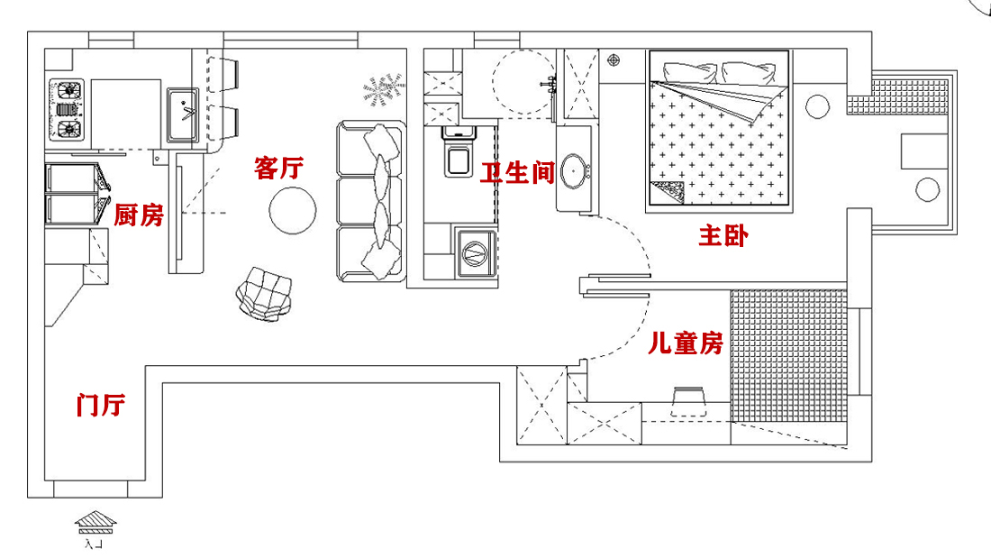 5、次臥改造為兒童房。次臥將近7平米,業(yè)主希望規(guī)劃為兒童房,滿足日常儲物、居住、學(xué)習(xí)等需求。