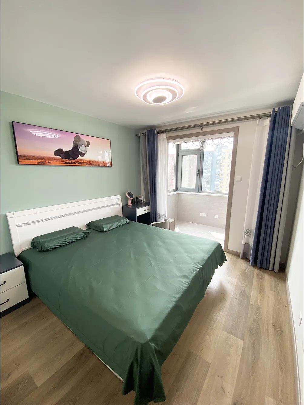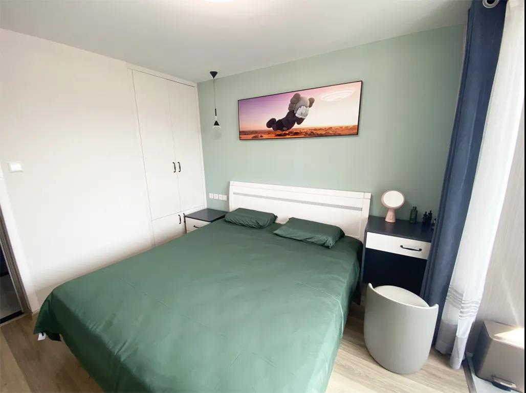次臥室規(guī)劃了榻榻米,既滿足了儲物又可以居住,定制儲物柜以及展示柜充分利用了臥室空間,次臥現(xiàn)在既可以當(dāng)做客房也可以當(dāng)做書房,未來有了小朋友后,這個地方就是兒童房了。