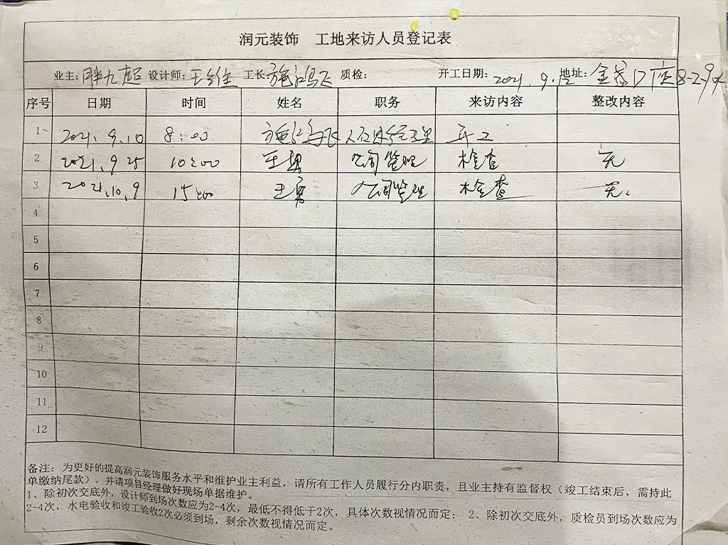人員登記表記錄每一位來到施工現(xiàn)場的人,特殊時期實名登記,責(zé)任到人。