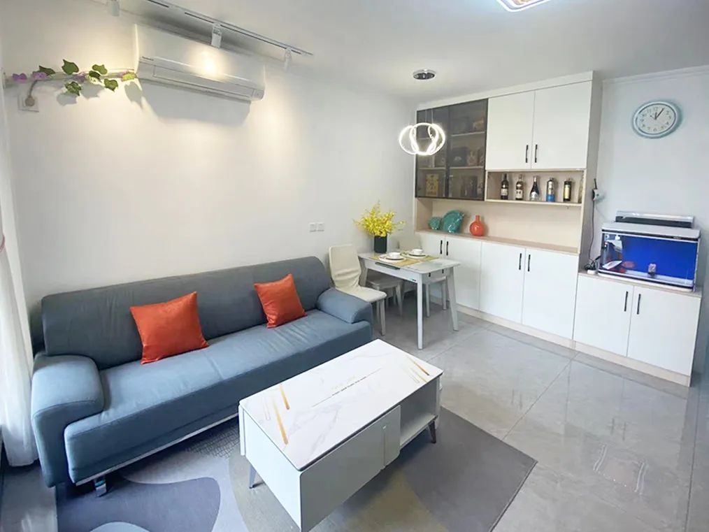 設(shè)計(jì)師重新規(guī)劃了客廳空間,隱藏了管道,增加了儲(chǔ)物和用餐區(qū),功能齊全,使用方便。