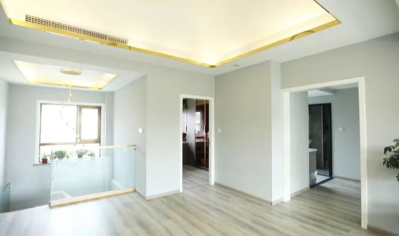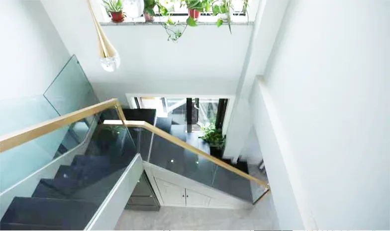 設(shè)計(jì)師將原有的旋轉(zhuǎn)樓梯拆除改為L型樓梯,不僅節(jié)省了空間,還增加了一層的儲(chǔ)物,美觀實(shí)用。