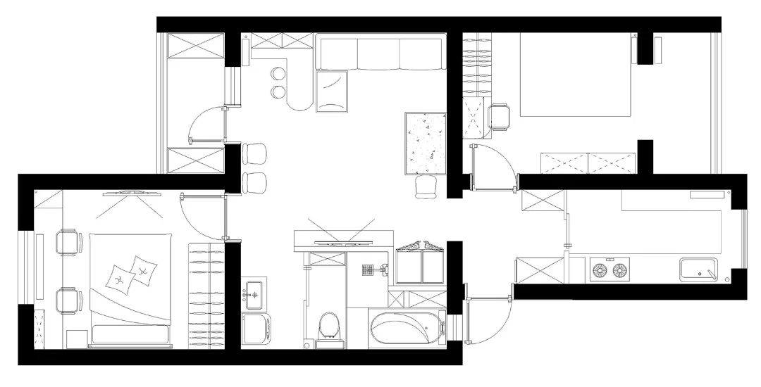 增加門廳儲物,解決采光問題 。廚房增加儲物和操作空間。次臥增加儲物,解決采光問題。重新規(guī)劃客廳,增加吧臺和收納空間。衛(wèi)生間干濕分離,增加浴缸。