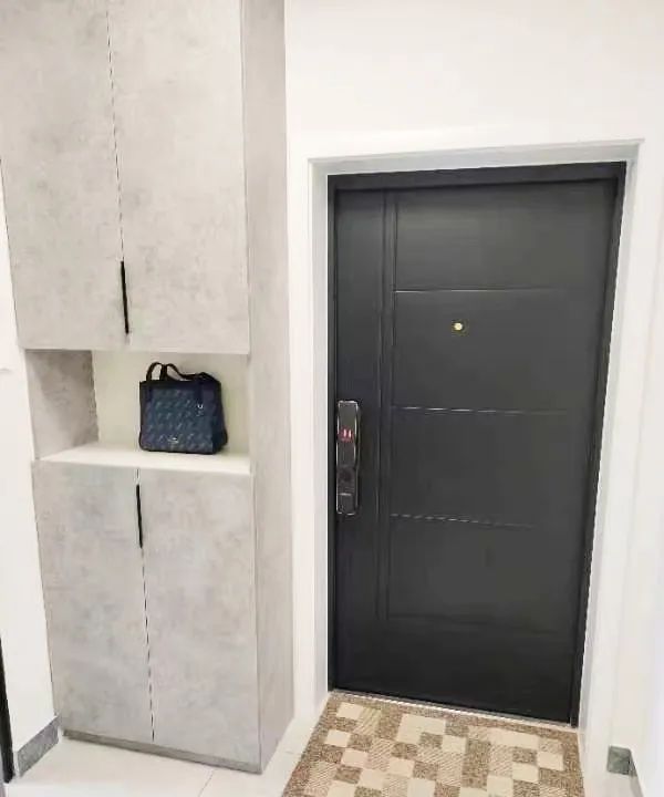 設(shè)計師拆除了廚房部分墻體,安裝了玻璃推拉門,借用廚房的采光,讓整個門廳明亮起來,同時,沿兩側(cè)墻體做了通頂鞋帽柜,解決了門廳的收納問題。
