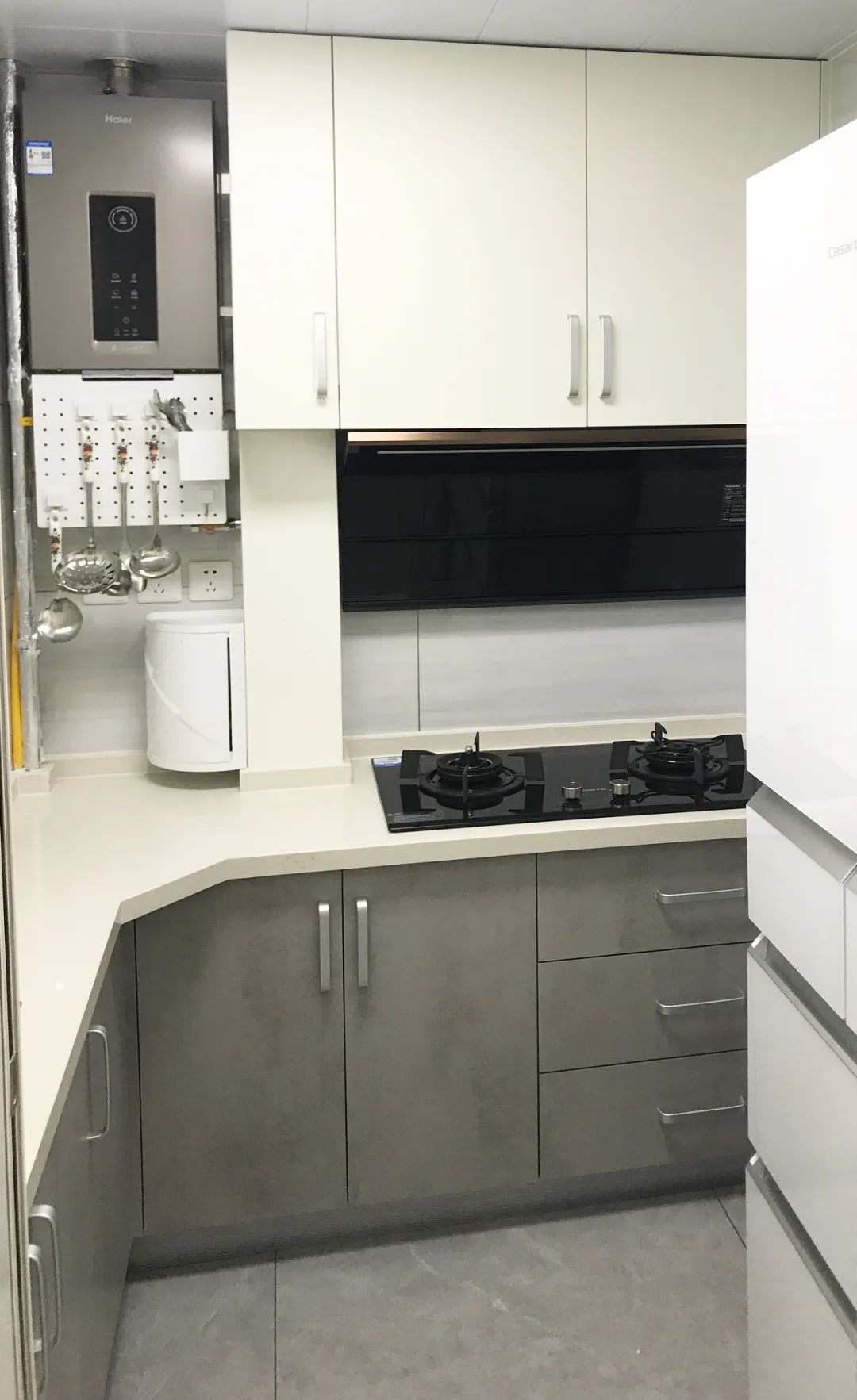 廚房——新建S墻,增加廚房面積,一組L型櫥柜動(dòng)線合理,改造后的廚房操作更舒適,儲(chǔ)物更強(qiáng)大,功能更齊全。