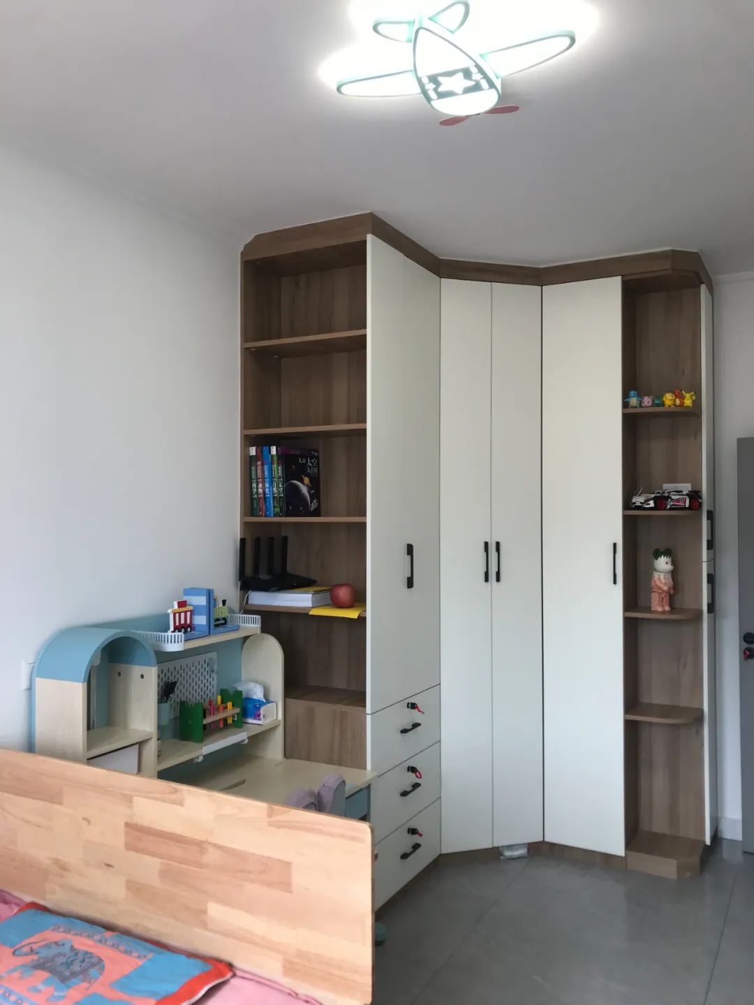 兒童房——12平米的兒童房,合理規(guī)劃了休息、學(xué)習(xí)、儲(chǔ)物等功能區(qū),同時(shí),也預(yù)留出了足夠的活動(dòng)空間。