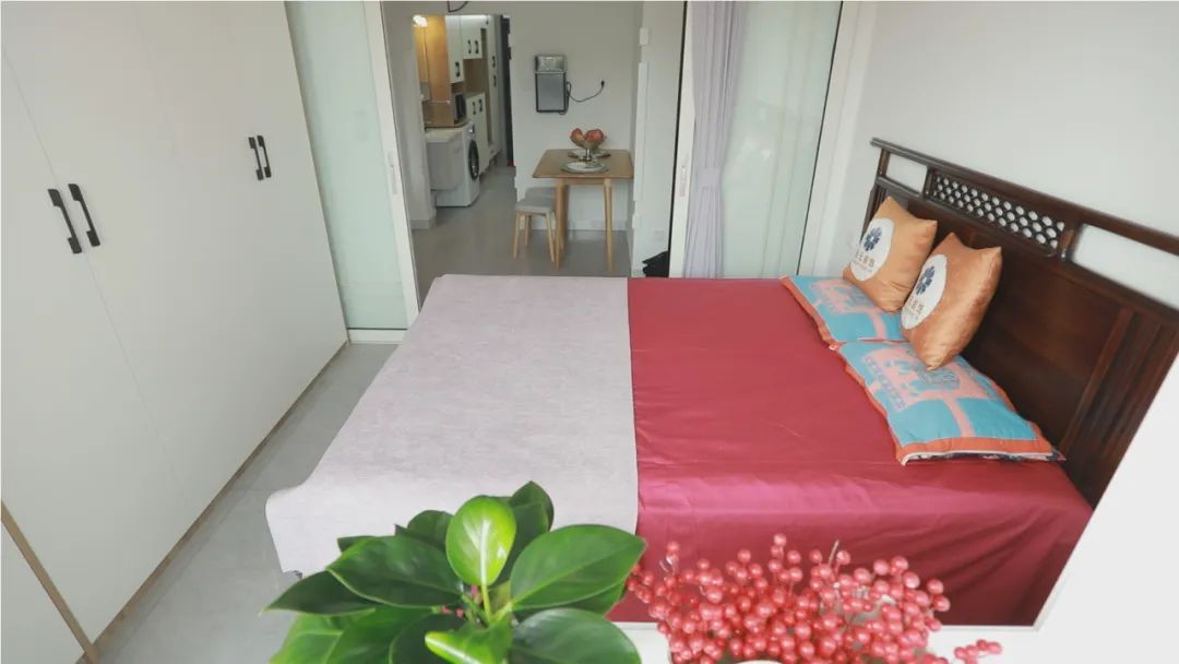 客餐廳——移動(dòng)墻體,借用臥室空間規(guī)劃了5.7平米的客餐廳,雖然面積有限,但功能完善好用。