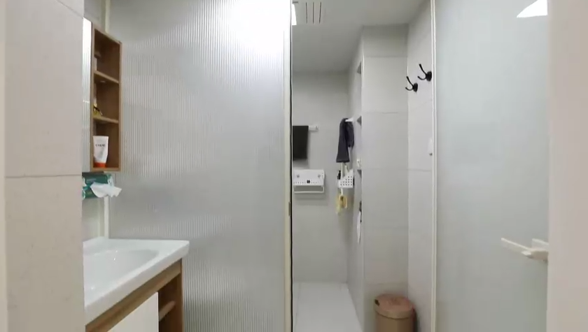 設(shè)計(jì)師在次衛(wèi)的馬桶與水盆之間,用長虹玻璃來隔斷,寬度只有2公分,節(jié)省空間的同時(shí)也實(shí)現(xiàn)了干濕分區(qū)。