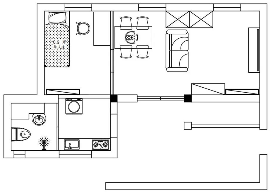 合理規(guī)劃客廳,改善客廳采光,既要滿足會(huì)客,還要解決臨時(shí)居住的問題,并且還要有充足的儲(chǔ)物空間